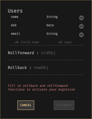 Dark has a powerful DB migration framework that we believe makes DB migrations so simple you will do them often. All datastores in Dark (which are key-value stores / persistant hashtables) have a type. To migrate a datastore, you just give it a new type, and a rollback and rollforward function to convert values back and forth between the two types.